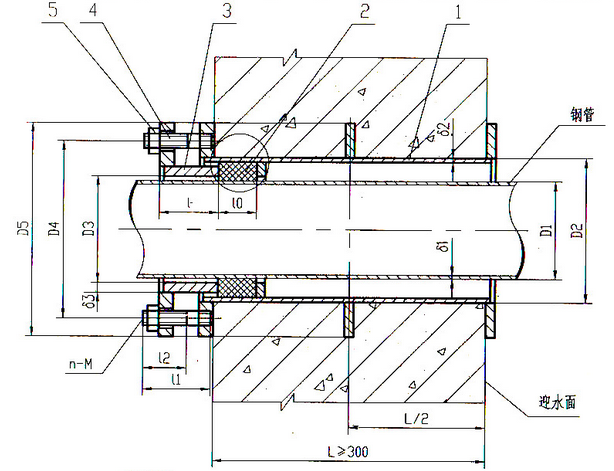 柔性密閉套管是為了解決有些地下工程需要管路穿墻而過,而通過處又有嚴(yán)密防水要求;還有些構(gòu)筑物也需要管路穿墻而過,同時又限制管路不能因溫度變化或外力產(chǎn)生伸縮和位移,更不允許管路在外在因素作用下產(chǎn)生振動而設(shè)計制作的。它的外殼一次性澆注在墻壁上,管子從套管中間通過,管子外徑與套管中間用填料密封,起到了防水和減振作用。