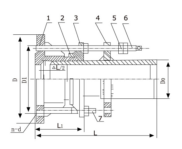 | 公稱通徑DN | 管子外徑DW | 法蘭連接尺寸 | 密封面d | 總長L | *大伸縮量δ | ||||